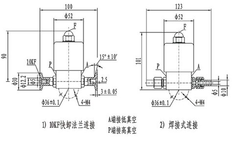 電磁高真空帶充氣閥GDC-Q5連接在高低真空系統上,該閥通電閥板打開,同時封閉充氣口,將P、A端管路接通;斷電時閥板關閉,切斷P、A端管路,保證系統的真空度,同時打開充氣口,通過F端向A端充氣。電磁高真空擋板閥GDC-5連接在高低真空管路上,用來接通或切斷真空系統的氣流。GDC-Q5型、GDC-5型真空閥適用的工作介質為潔凈的空氣和非腐蝕性氣體。